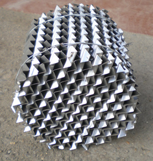 SV单元是由一定规格的波纹板组装而成的圆柱体,它的技术性能:最高的分散程隆为12um,液—液相及气—气相的不均匀度系数为
